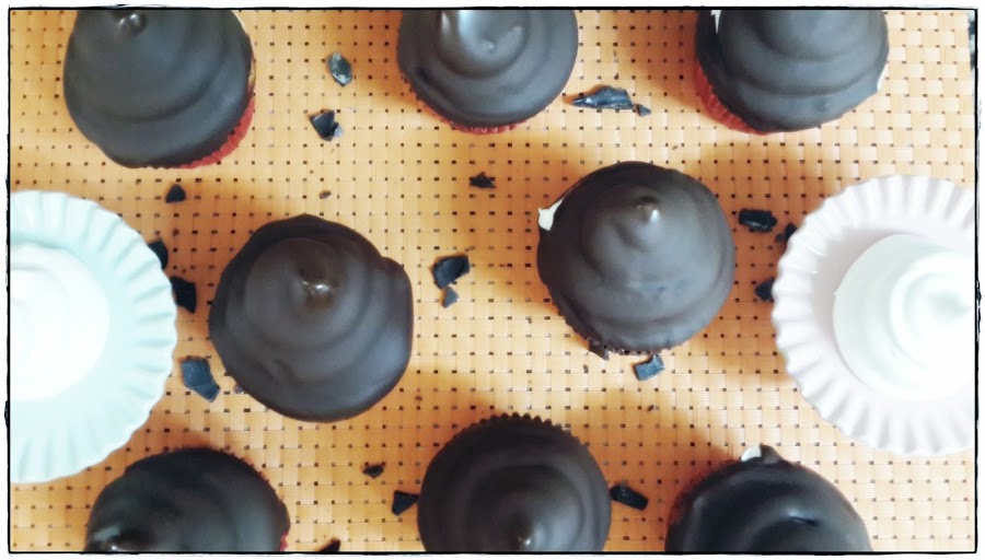Cuando el chocolate esta templado ponerlo en un recipiente en el cual podamos bañar los cupcakes sin tacar el fondo.