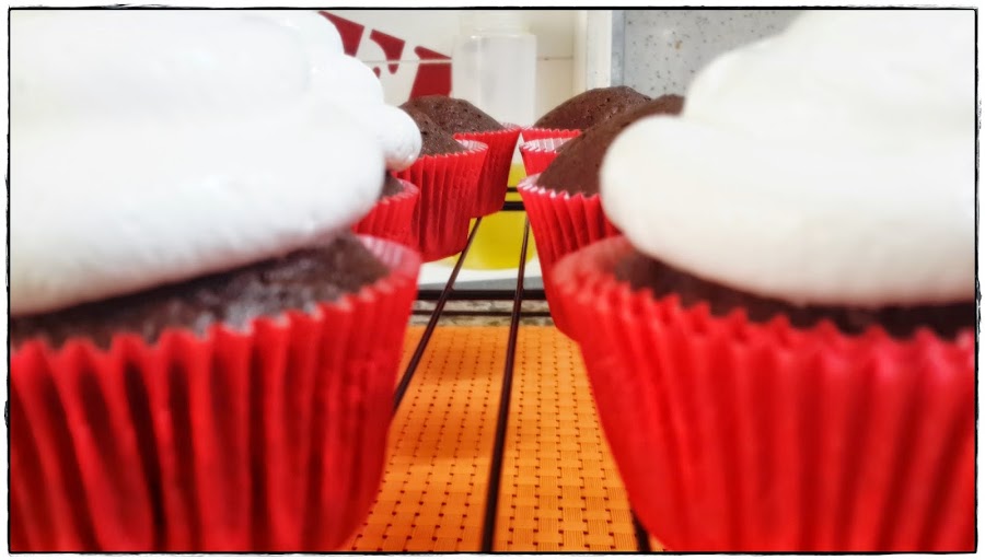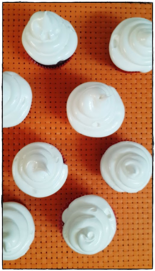 Pues para relajarme entre prueba y prueba me dije: Eva haz esos cupcakes que tanto tiempo quieres hacer, te relajas y luego sigues, y funciono jejeje. a la siguiente intentona los Macarons salieron jejeje.