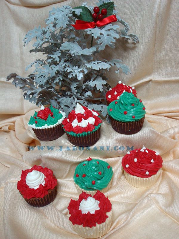 Con la llegada de las navidades heelaborado mis cupcakes con colores y motivos navideños, los colores como norojo, blanco y verde, la composición es la misma de siempre aceite de oliva,aceite de coco, aceite de almendras y cera de abeja.