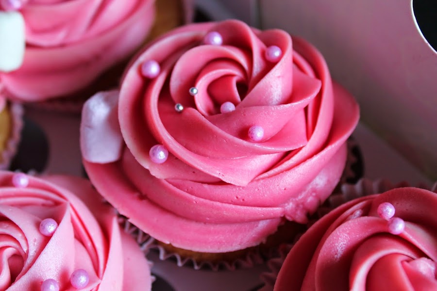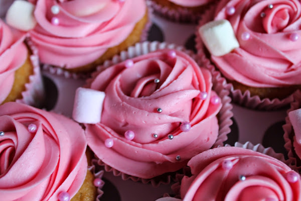 Introducimos el buttercream en una manga pastelera y decoramos los cupcakes. Yo he utilizado la boquilla de rosa de Wilton o 1M, aunque podéis decorarlos a vuestro gusto.