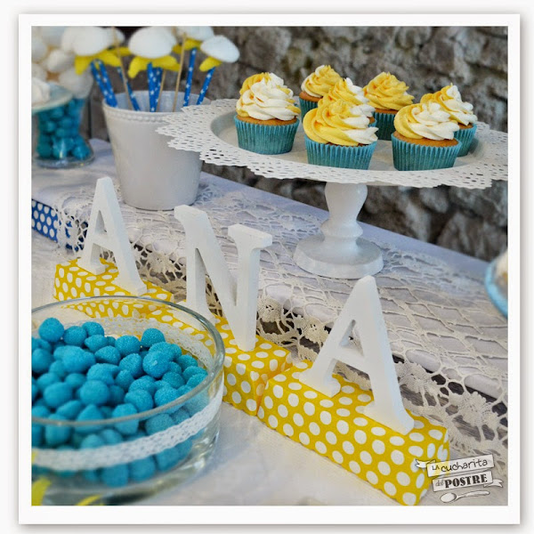 La semana pasada fue la primera comunión de una niña encantadora y cariñosa que se llama Ana. Como en otras ocasiones, El Arma Secreta se puso en contacto conmigo para prepararle unos cupcakes y colaborar en el montaje de la mesa dulce. La comunión se celebró en la punto más alto de Alicante, dentro del Castillo de Santa Bárbara, un lugar lleno de magia, de luz, de sol, de mar, de vistas increíbles, así que decidimos hacerle estos CUPCAKES PARA COMUNIÓN DE ALMENDRA Y LIMÓN Y LACASITOS CON CHOCOLATE BLANCO.