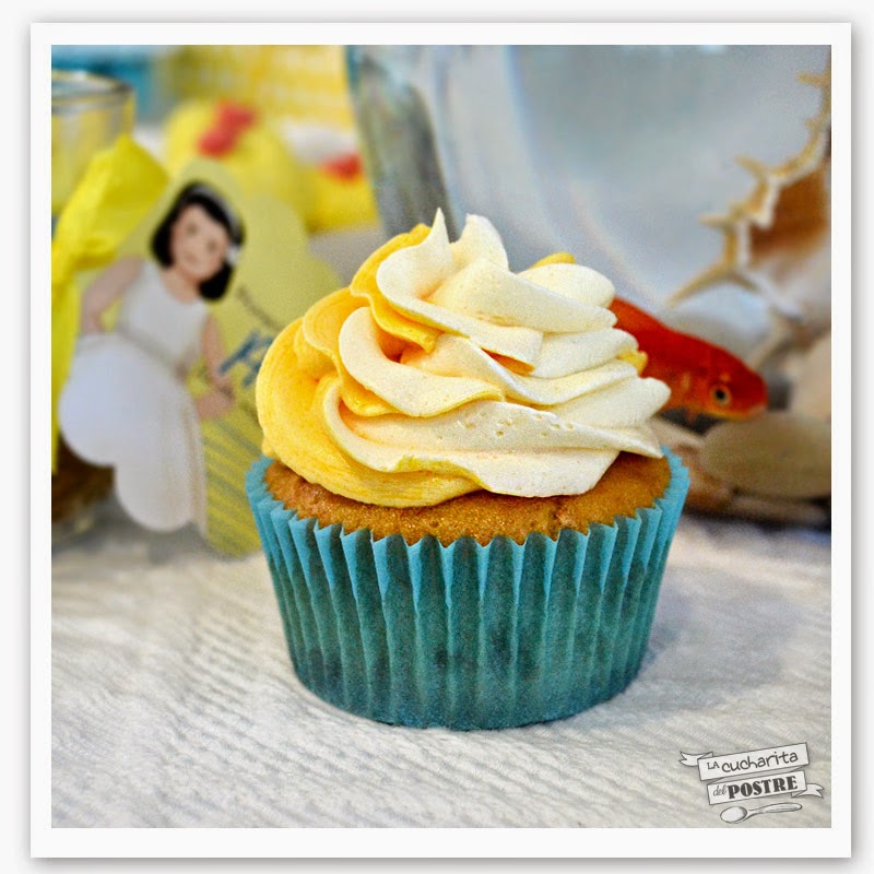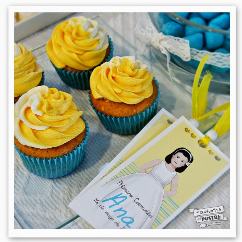 Y el resultado final han sido estos cupcakes tan ricos y apetecibles en los que hemos combinado los colores de la comunión de Ana: