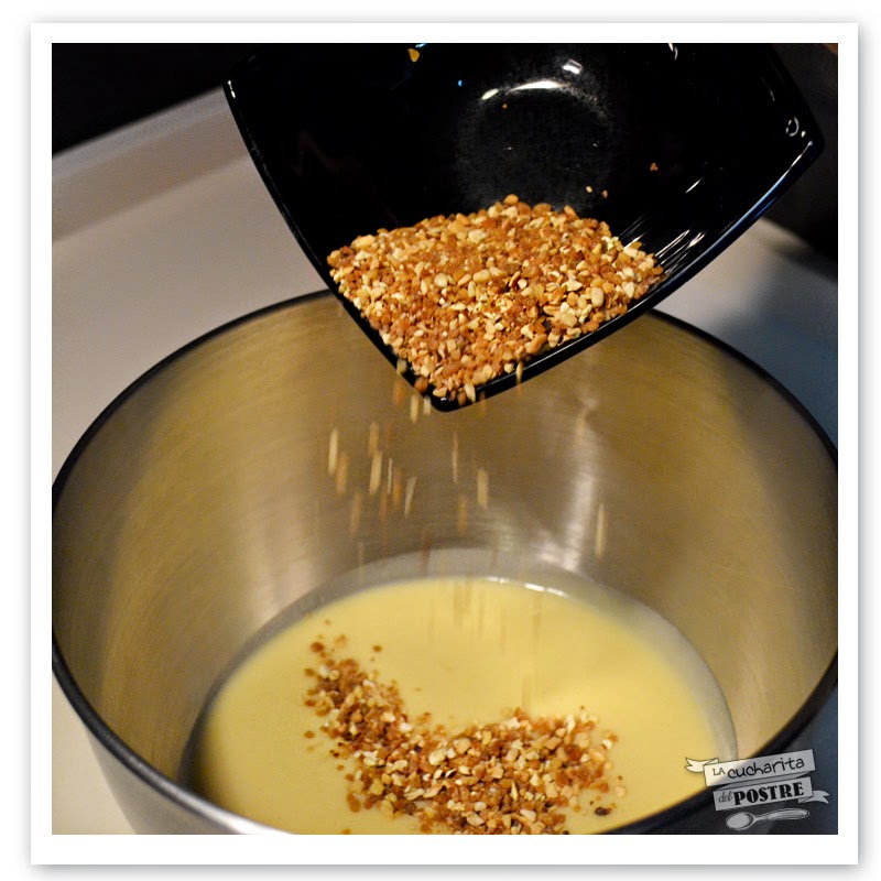 1. Al resto de la masa base añádele el crocanti de almendra.