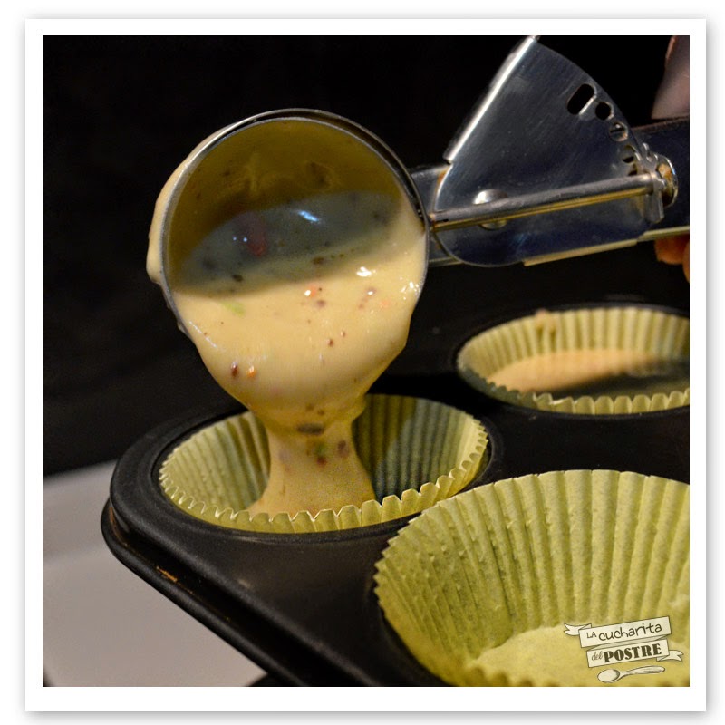 4. Reparte la masa en la cápsulas usando una cuchara de helado y llénalos solo hasta la mitad o 2/3 como máximo de su capacidad. Hornea durante 18-20 minutos a 180ºC.