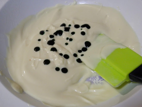 Para ello, yo fundo chocolate blanco en tandas de 30 segundos en el microondas a potencia media.