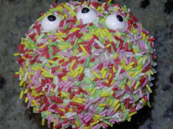 Pon encima los ojos de caramelo y a continuación, reboza con los fideos de chocolate.
