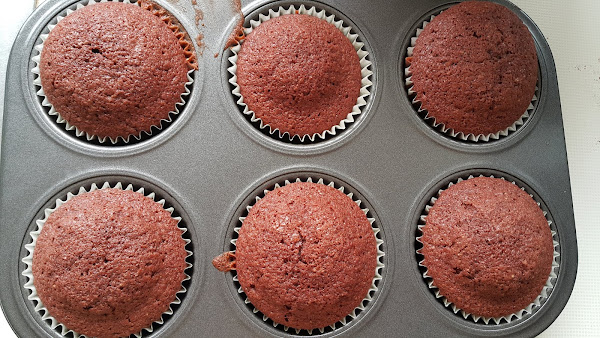 Yo tuve los cupcakes 23 minutos a 180ºC, pero cada horno es un mundo. Pasados 20 minutos comprobad, mediante la inserción de un palillo en el centro del cupcake, si está ya listo o no (según si sale limpio o con masa pegada).