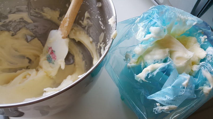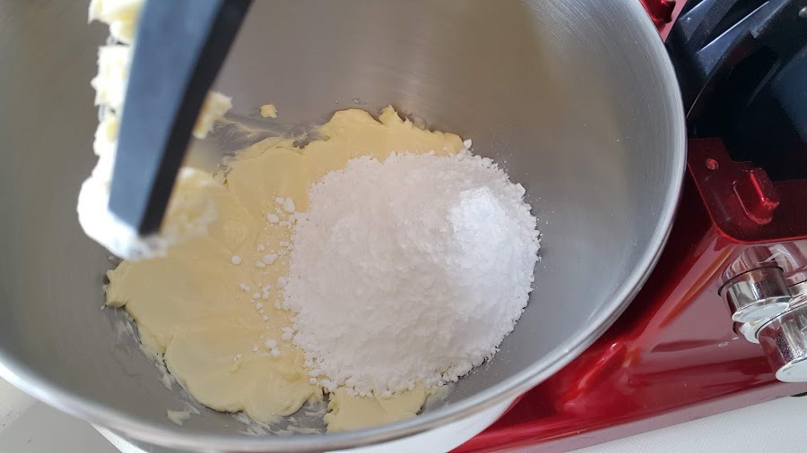 Para la buttercream necesitaremos batir la mantequilla en pomada hasta que se forme una crema suave y le añadiremos el azúcar glas.