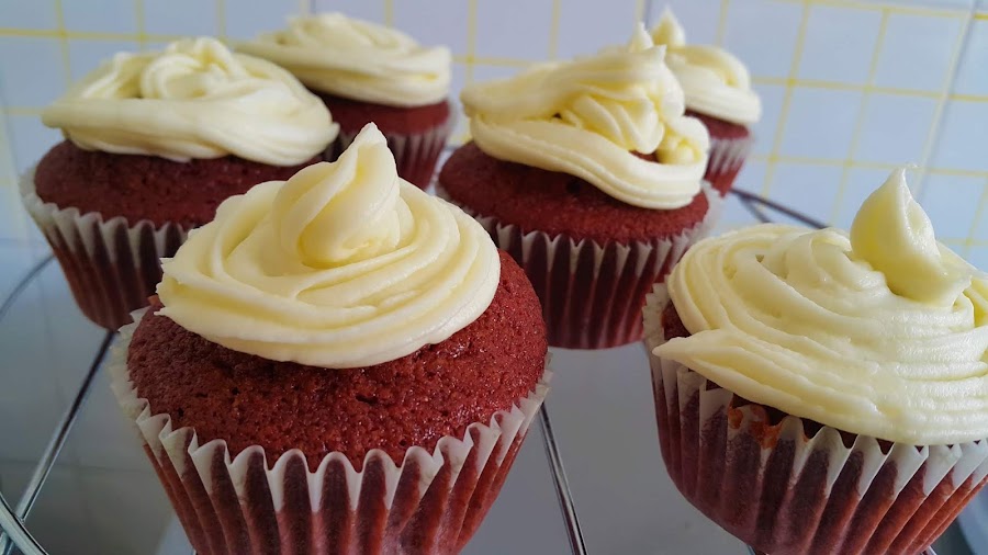 Hoy os traigo una receta dulce, unos cupcakes tiernos y muy míticos, los red velvet. La semana pasada preparé estos cupcakes para una celebración y con las cantidades que os pongo a continuación os pueden salir 12 cupcakes o bien 6 unidades y un mini bizcocho de unos 8 cm de diámetro. Empecemos con los ingredientes:
