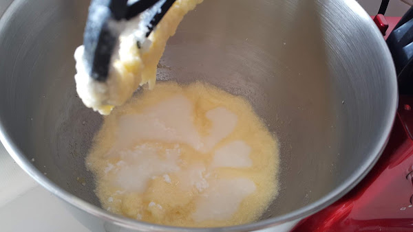 Batiremos la mezcla hasta que el azúcar se integre por completo que se forme una masa cremosa y suave.