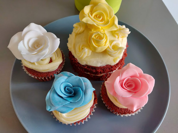 Otra opción de decoración es con flores de fondant teñido como las que preparé yo.