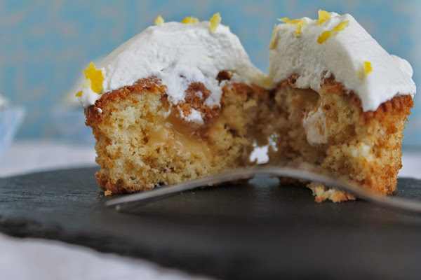 Pero hablando de nuestros cupcakes, comentaros que la base es un bizcocho de vainilla suave y muy jugoso, que relleno de lemon curd. Además he conseguido un mayor equilibrio en la crema. Y si cuando prepare la Tarta de chocolate blanco con lemon curd y arándanos no hubo consenso acerca del punto de la crema, en esta ocasión sí ¡¡¡¡bien!!!!. Así, que también paso a incorporarla a mi recetario básico.