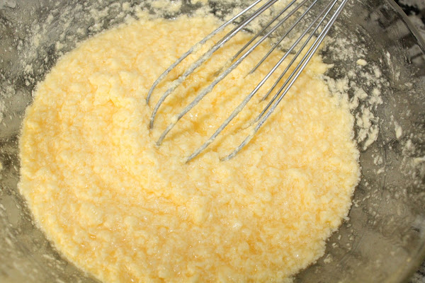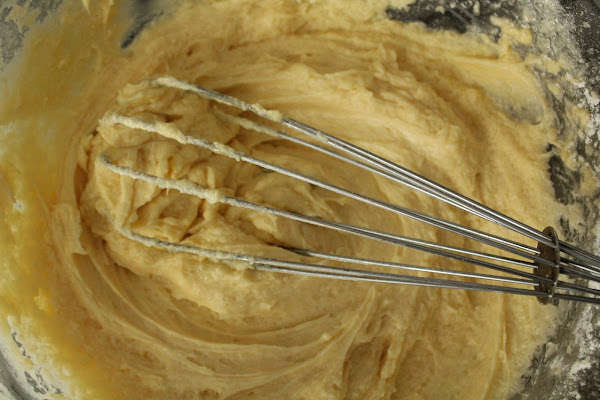En un bol añadimos la mantequilla, los huevos y el azúcar hasta obtener una masa homogénea.