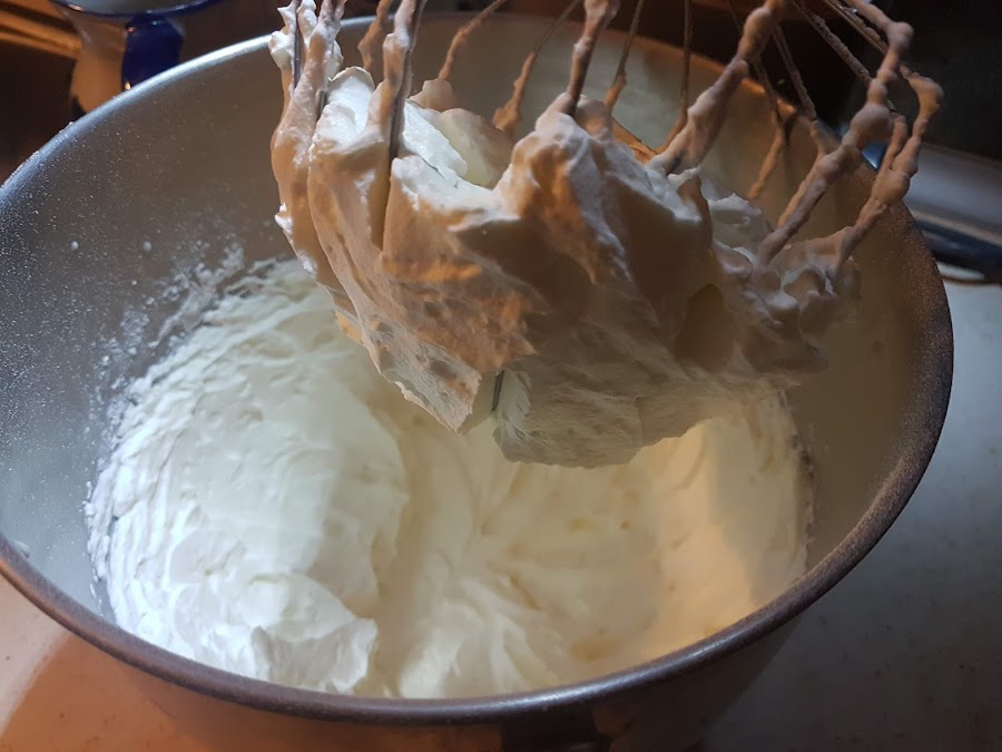 Una vez que tenemos los cupcakes rellenos ya sólo queda hacer la crema de nata montada (crema de leche) y queso. Como ya he dicho, yo no suelo hacer nata montada (crema de leche) porque me gustan más otras cremas como el merengue o la crema de queso y mantequillas, así que me daba un poco de miedo que la textura no quedara lo suficientemente firme como para decorar los cupcakes, o que se me fuera la mano batiendo y acabara haciendo mantequilla...pero la crema quedó perfecta. Uno de los trucos a la hora de batir la nata (crema de leche) es que debe de estar muy fría. Si podemos enfriar el recipiente donde la vamos a batir, también mejor. Además en conveniente que sea un recipiente amplio para que entre bien el aire. Como ya he comentado alguna vez, yo tengo a mi pequeño esclavo, un Kmix de Kenwoo, mi pequeño gran amor que lleva ya en casa nada más y nada menos que 6 años. Pero vayamos al grano, o mejor dicho a la crema