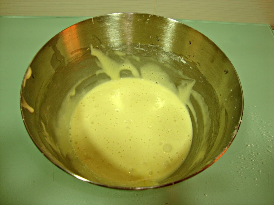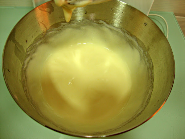 Luego añadimos las yemas una a una y finalmente envolvemos la harina lentamente para que no baje mucho la mezcla.