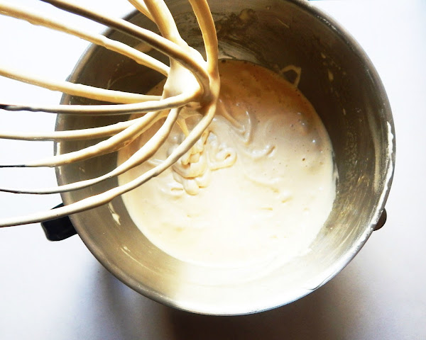 Removemos el bowl y ahora lo llevamos a la batidora con el aditamento de batidor globo, batimos a velocidad alta, hasta que la mezcla esté esponjosa y tenga un color amarillo pálido. Como última prueba para saber si está lista, levantamos el batidor y dibujamos alguna figura, yo hice la letra "s", debe mantener unos 10 a 15 segundos la forma antes de desaparecer. Si lo hace antes, batimos un poco más la mezcla.