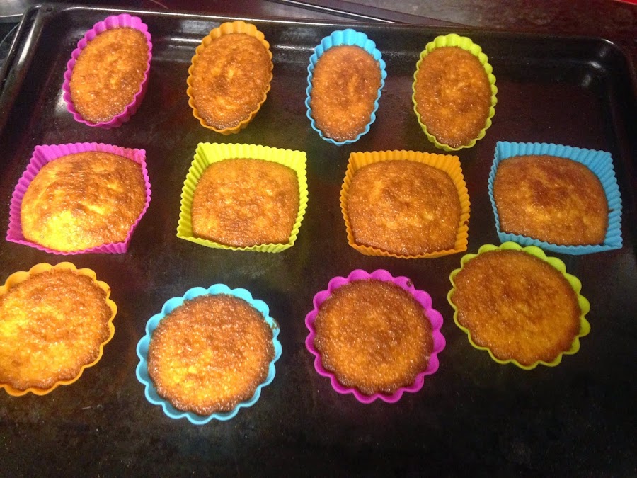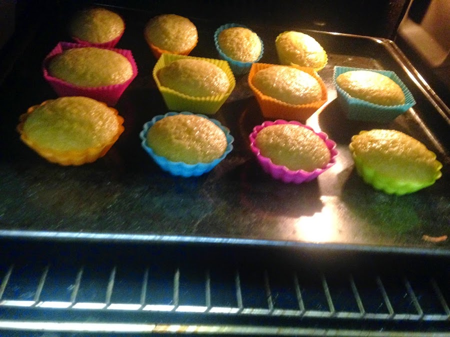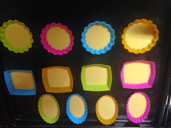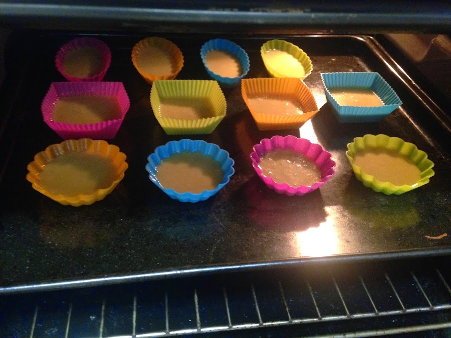 Llenaremos los moldes por la mitad. Para evitar que se salga cuando empiecen a subir.