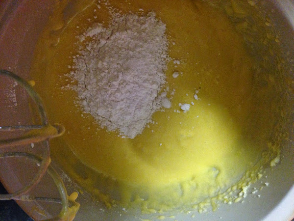 Una vez esta la masa suave y homogenea agregaremos la harina lentamente.Continuaremos batiendo.