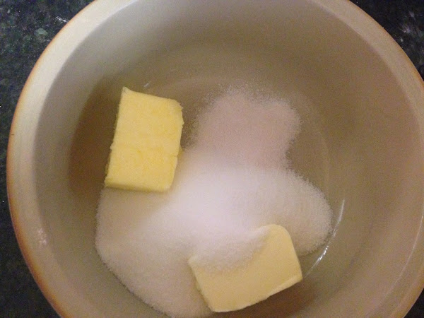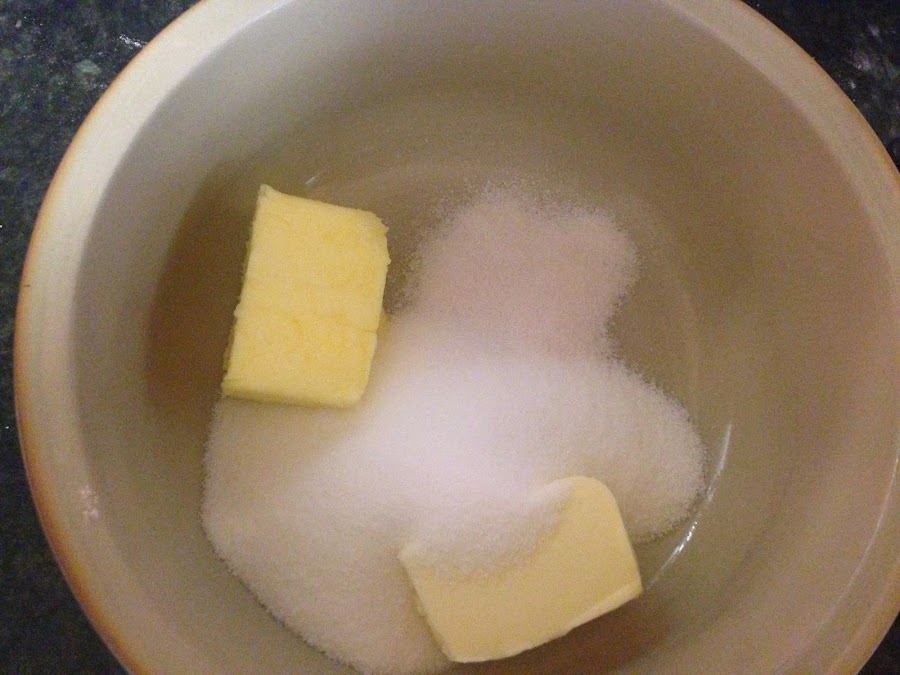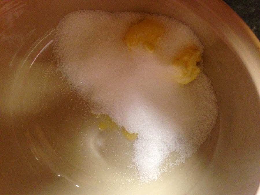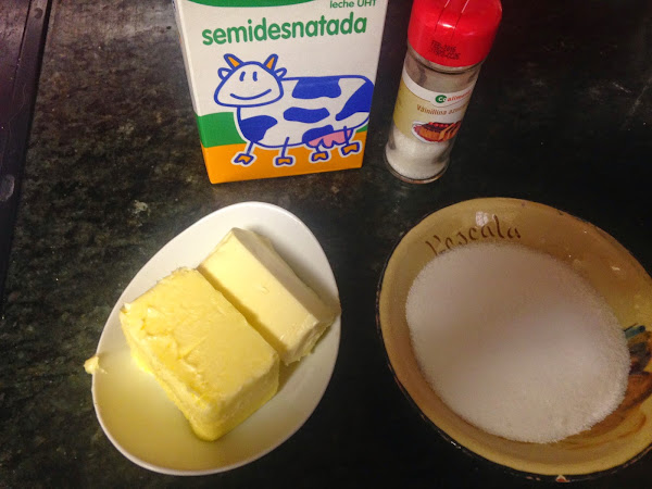 Cojeremos un bol y pondremos la mantequilla, azúcar, la lech y la esencia de vainilla.