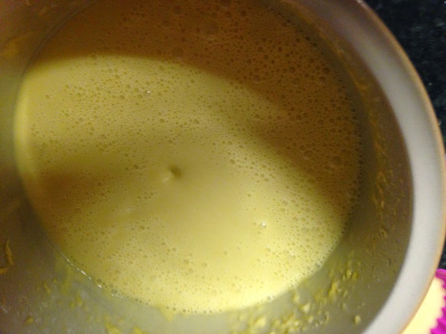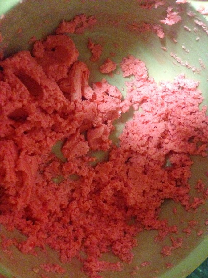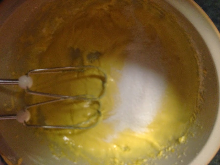 Batiremos energicamente con una batidora de barillas cuando empiece a quedar pomoada añadir colorante deseado y continuar batiendo.