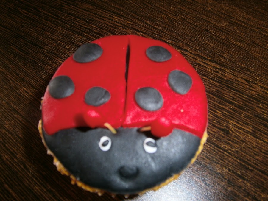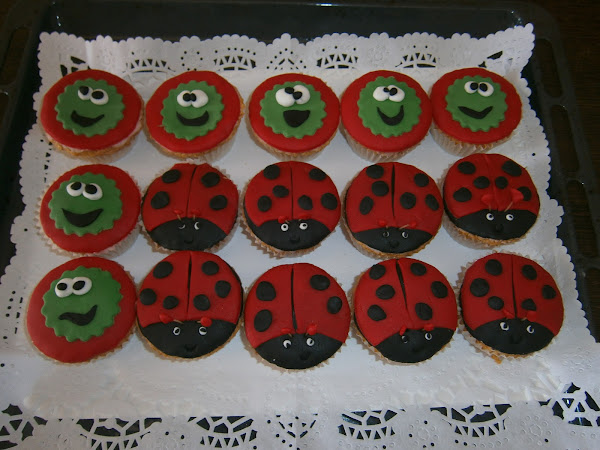En este caso, yo hice unas mariquitas y unos muñecotes para llevar al cole, para el cumple de mi hijo.