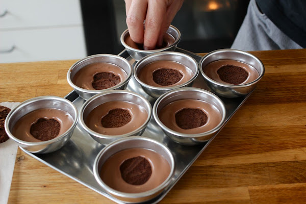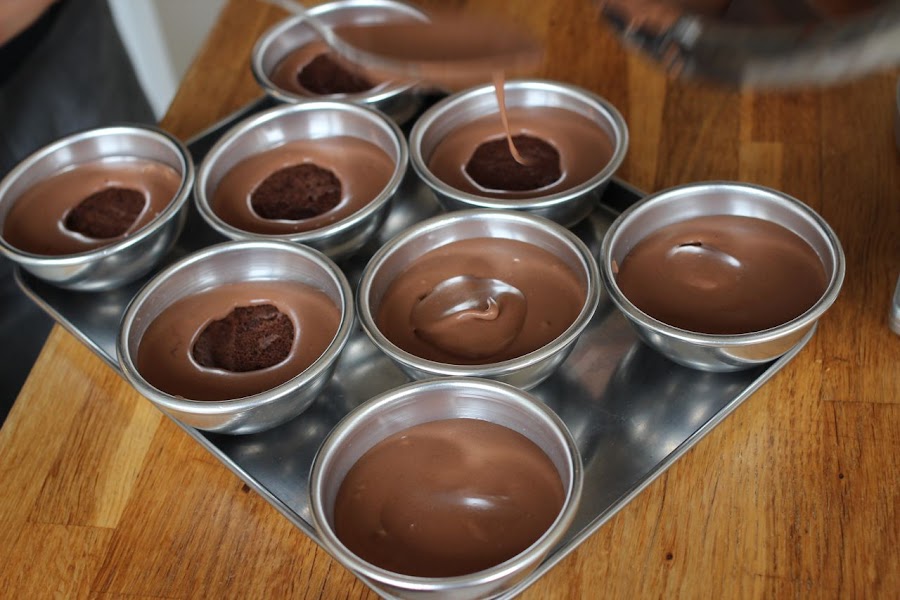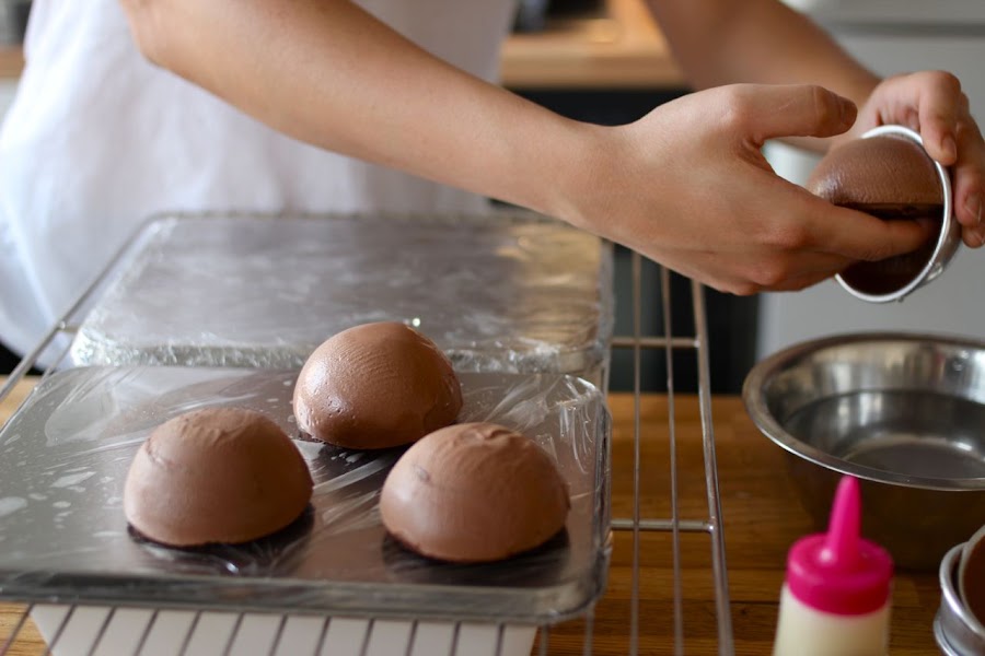 3) Añadir 2 cucharadas de mousse por molde cúpula