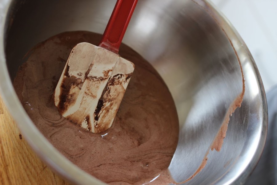3) Añadir los ingredientes secos y doblar con una espátula de goma