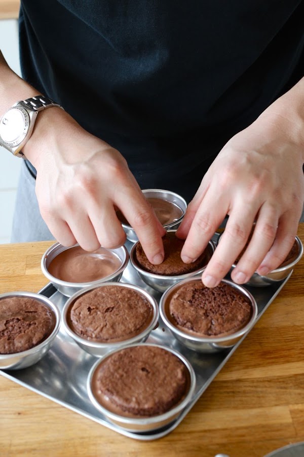 8) Desmoldar manteniendo en agua caliente durante unos segundos y presionar un lado hacia abajo