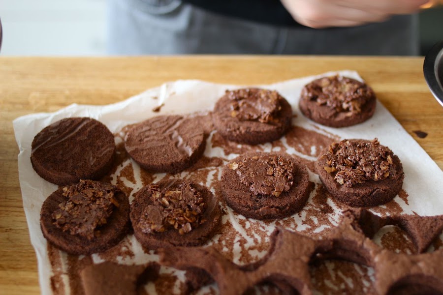 1) El uso de cortadores de galletas, corte genoise en pequeñas y medianas rondas