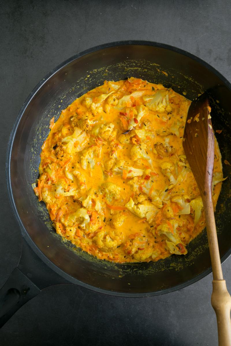 Si quieres ver el paso a paso en fotos anda a mi instagram y entra a los stories destacados “Curry de coliflor”