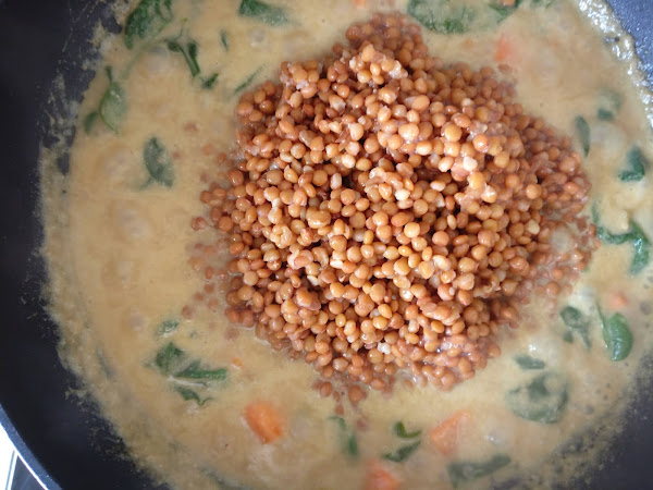 Para finalizar escurrimos bien las lentejas y las agregamos.