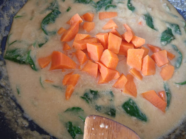 Seguidamente agregamos el boniato para que termine de cocinarse a fuego bajo en la sartén.