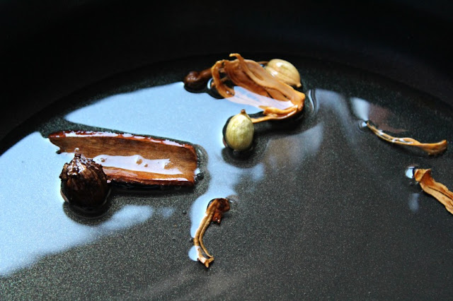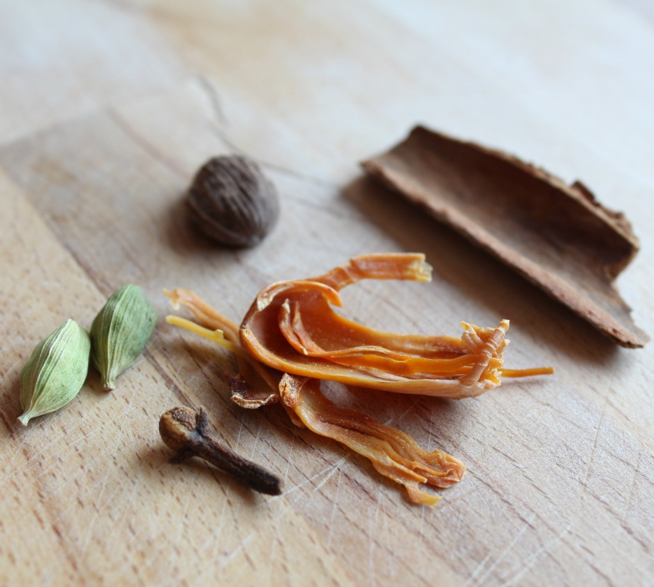 Infusionamos el aceite con, el clavo, los cardamomo, la canela y la flor de macis.
