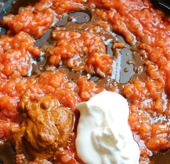 Añadimos también, una cucharada de yogur y un poco de caldo.