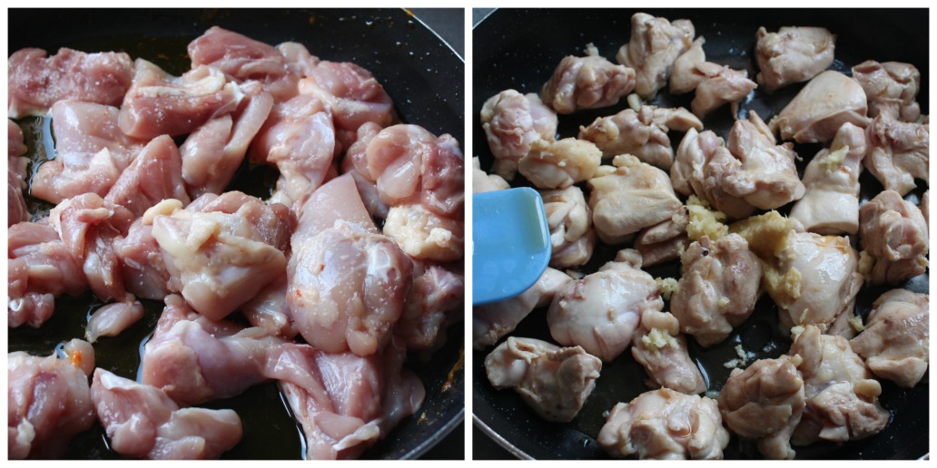 Aceite en una sartén, doramos el pollo, pero... poco