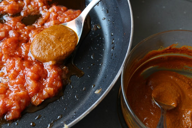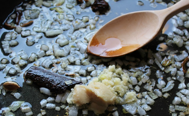 Ahora, una cucharada de pasta de jengibre y ajo.