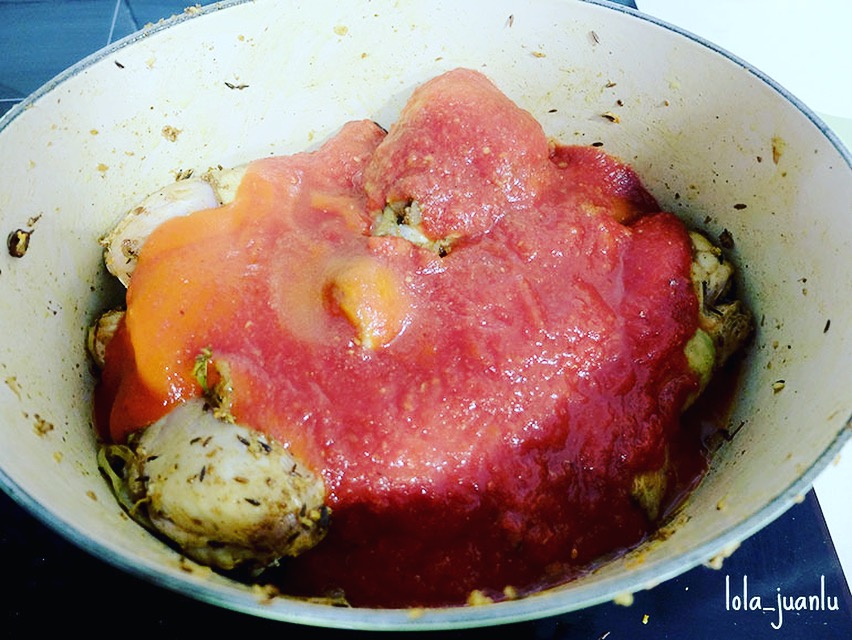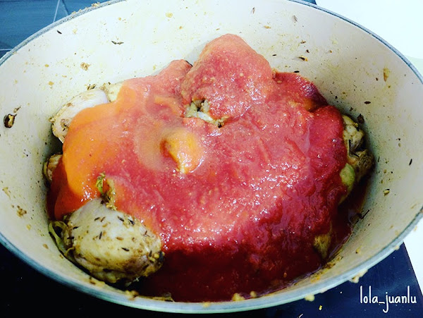 Las 2 tazas de tomate triturado se pueden sustituir por 2 tomates maduros picados.