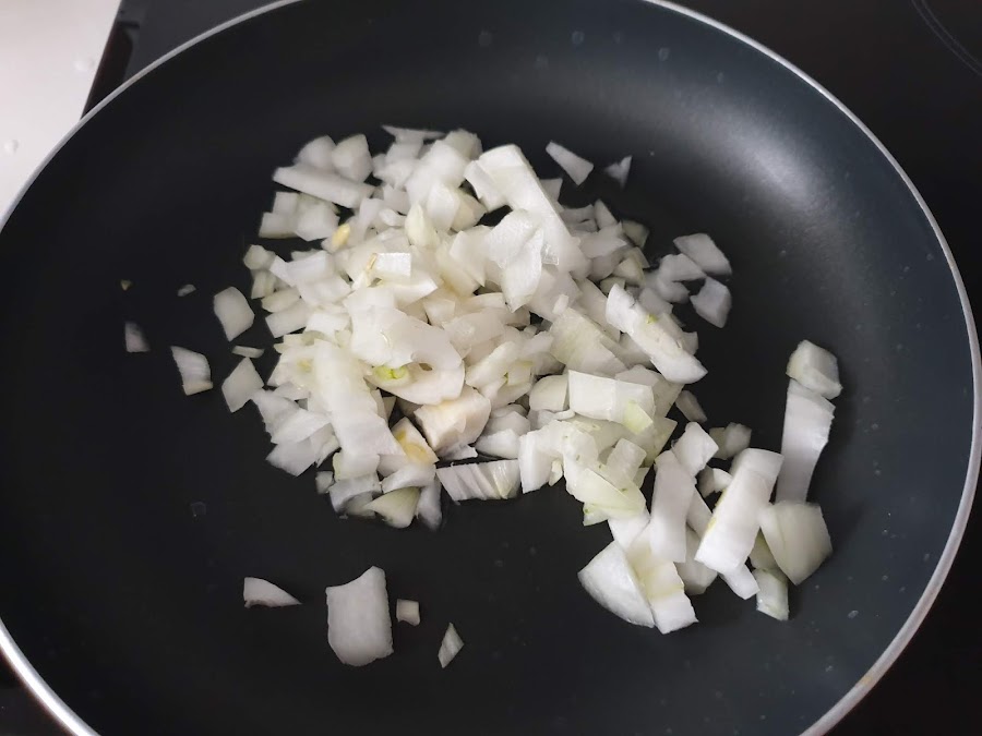 1. - Comenzamos troceando la cebolla a nuestro gusto, y la ponemos a pochar con un poco de aceite de girasol.