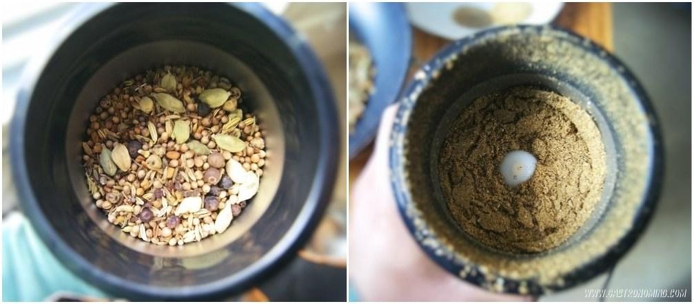 2. Dejamos enfriar y luego trituramos en un molinillo estas especias hasta hacer polvo.