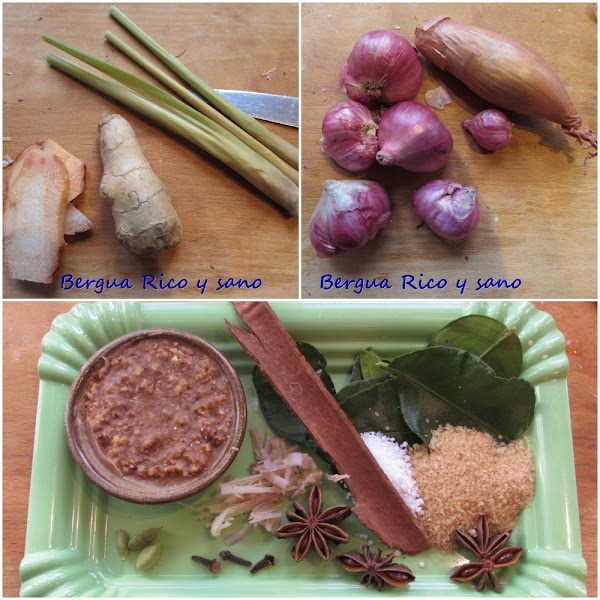* El galangal es una raíz parecida al jengibre, pero con unos toques cítricos especiales. En otras recetas puede sustituirse por jengibre y ralladura de lima, pero aquí no lo recomiendo. Yo tengo siempre galangal ya pelado y en rodajas en el congelador.