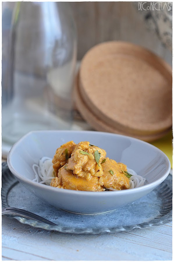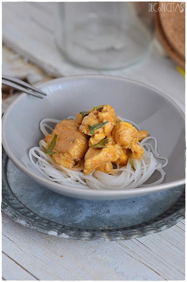 Para empezar quise no arriesgarme demasiado y me fui a la receta típica de curry rojo de pollo. Ideal para acompañar con arroz o fideos de arroz puesto que neutralizan sabores