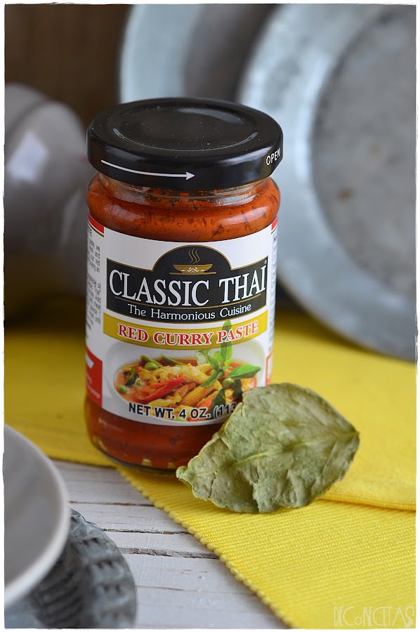 Llegó a mis manos este botecito de pasta de curry recientemente a raíz de empezar a cocinar comida tailandesa. No aguanto sin probar recetas nuevas y tenía que usarlo ya.