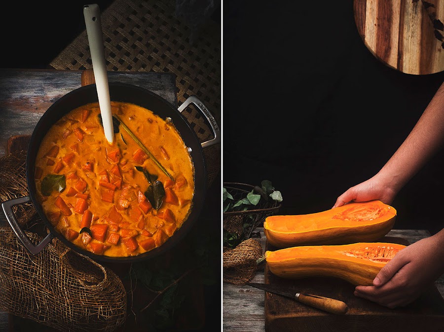 Soy una apasionada de la cocina Thailandesa, me encanta como combinan a la perfección sabores dulces, salados, agrios, amargos y picantes. Y sobre todo me encantan los sabores intensos, potentes, con chispa, que aportan sus currys, ya sean el rojo, verde, amarillo, a multitud de platos, como a los de pollo, pescado o marisco, incluso a los de hortalizas, como en este caso la calabaza.