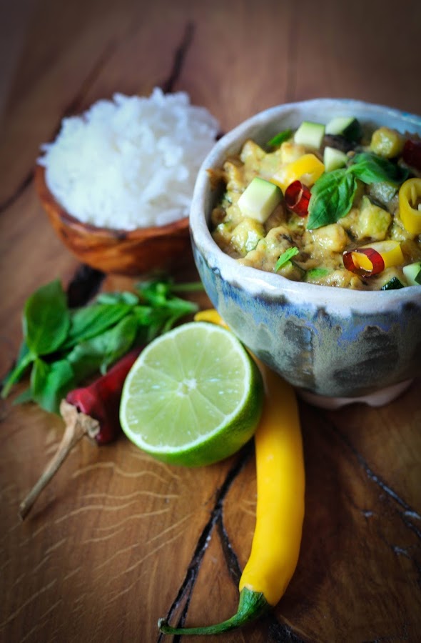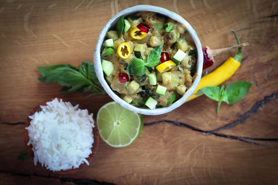 11. Sirve en cuencos individuales, empata con unas rodajas de pimiento picante por encima y unas hojas de albahaca fresca. Acompáñalo de arroz jazmín.
