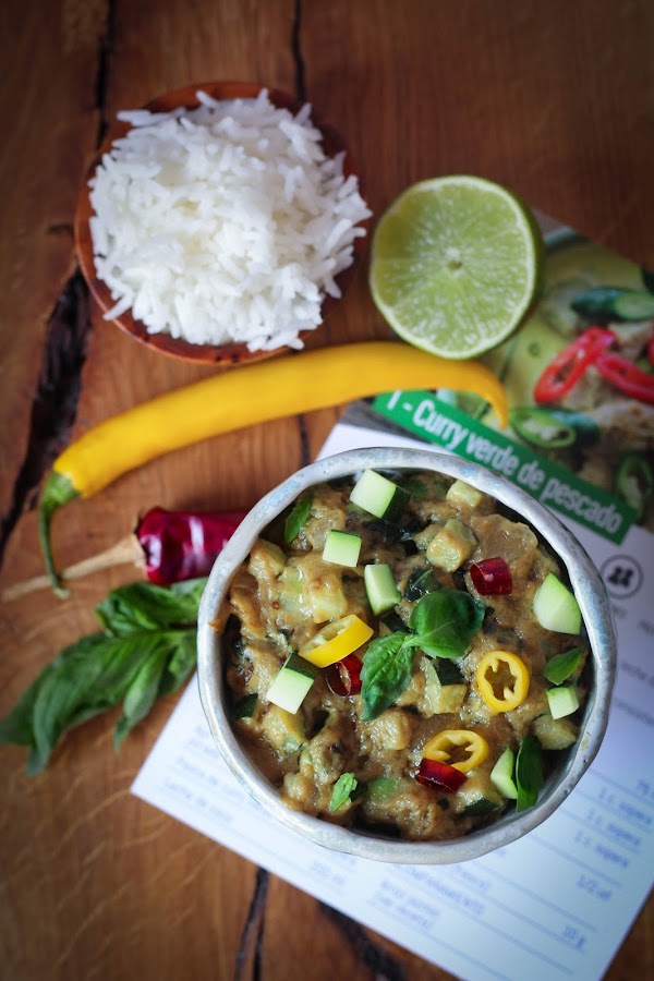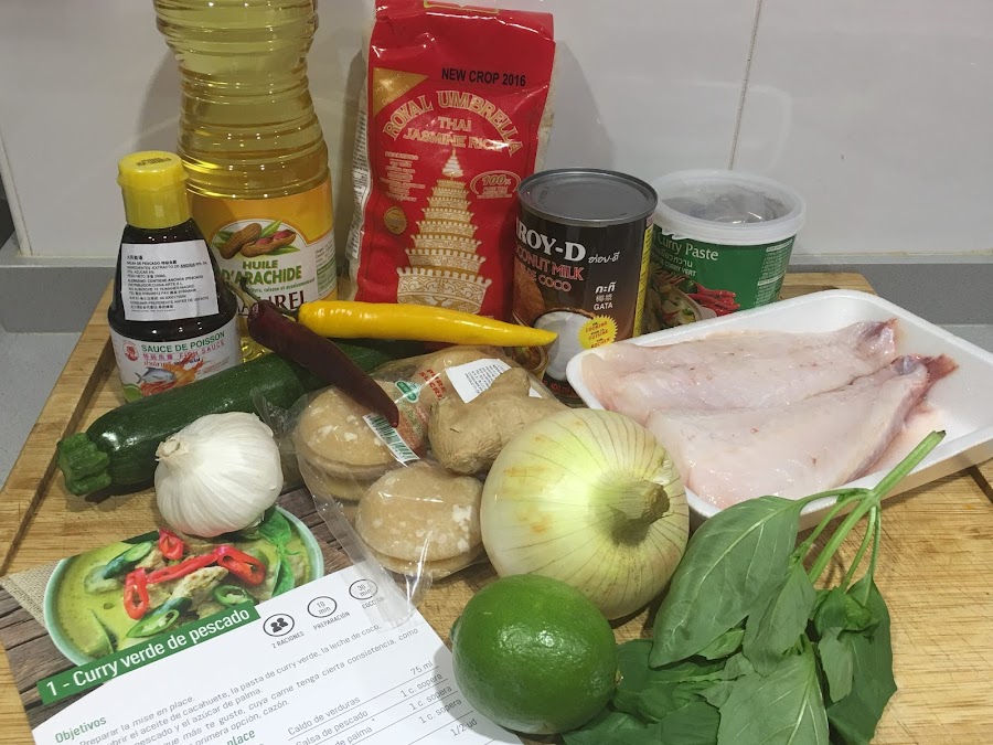 Y ahora si que si... vamos con la primera receta de este fabuloso kit; curry verde de pescado, un clásico de la cocina tailandesa y un gran desconocido para nosotros. El sabor es... ESPECTACULAR.