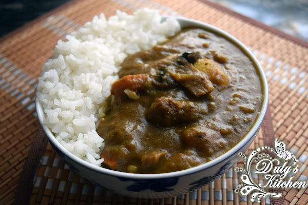 El 22 de Enero es el día del Curry en Japón y para celebrarlo os he preparado éste popular plato. Es una de mis comidas preferidas. El curry japonés estándar tiene como ingredientes cebolla, zanahoria, patatas y carne, yo os he preparado la versión que más me gusta. Su textura es densa, algo dulce y un poco picante. Se suele servir acompañado de arroz blanco y encurtidos.