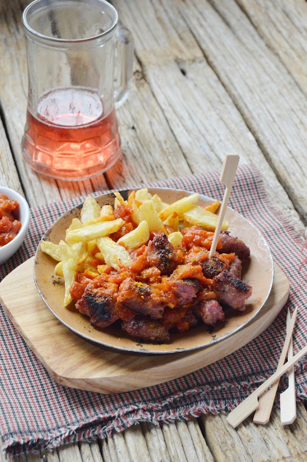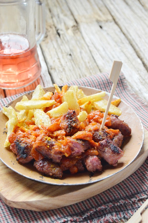 No tenía mucha idea de lo que iba a hacer con ellas e investigando un poco por la red descubrí el Currywurst. Este plato muy popular en Alemania se sirve en los puestos callejeros, mercados y ferias del país. Hoy os traigo mi versión casera con salchichas frescas de cerdo, deliciosa salsa de tomate y curry y patatas fritas. A nosotros nos encantó y no tiene ninguna complicación. Al lío!!!