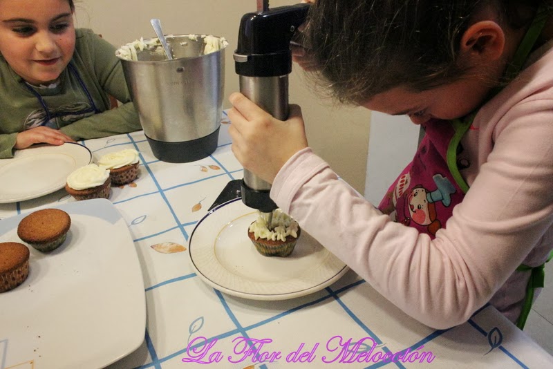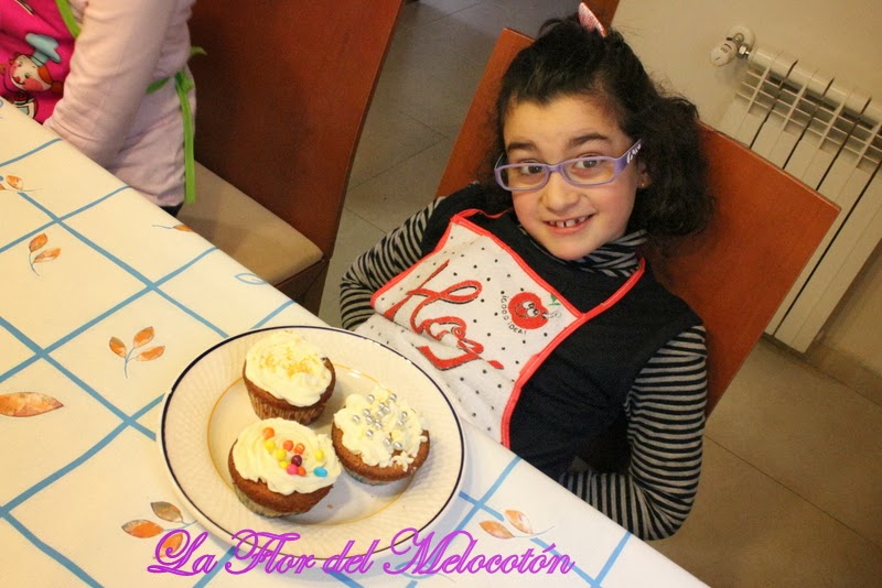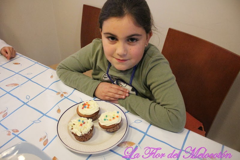 Creo que las niñas se lo pasaron muy bien y aunque se agobiaron un poco mientras hacíamos la masa de los cupcakes y estaban en el horno, luego se lo pasaron pipa decorando.