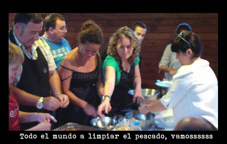 En el Taller hicimos todos los Arroces desde 0 desde el troceado de la verduras para el sofrito hasta aprender a limpiar calamares y chipirones (cosa que no había echo en la vida jajajaja). Picamos cebollas, pimientos, carnes pescados, pelamos langostinos, sofreímos, nos reímos y por lo menos yo aprendí un montón.