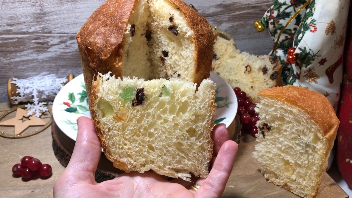 Panettone relleno de chips de chocolate.